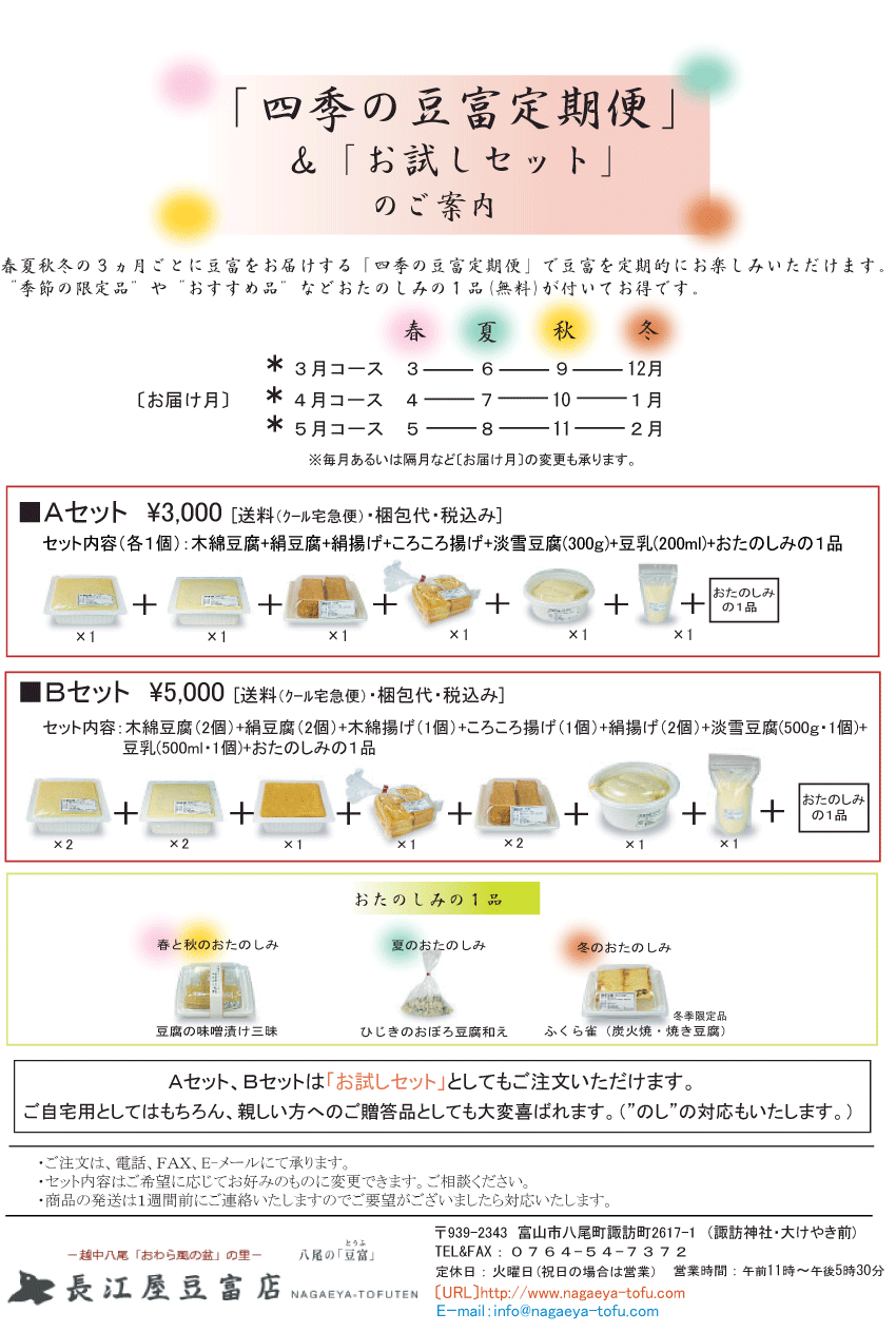 Copyright © 2007 NAGAEYA-TOFUTEN. All Rights Reservd.